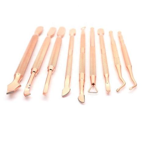 Rose Gold Stainless Steel Cuticle Pusher Remover Set Of 3 Dual Ended Nail Art Tools For Manicure Pedicure